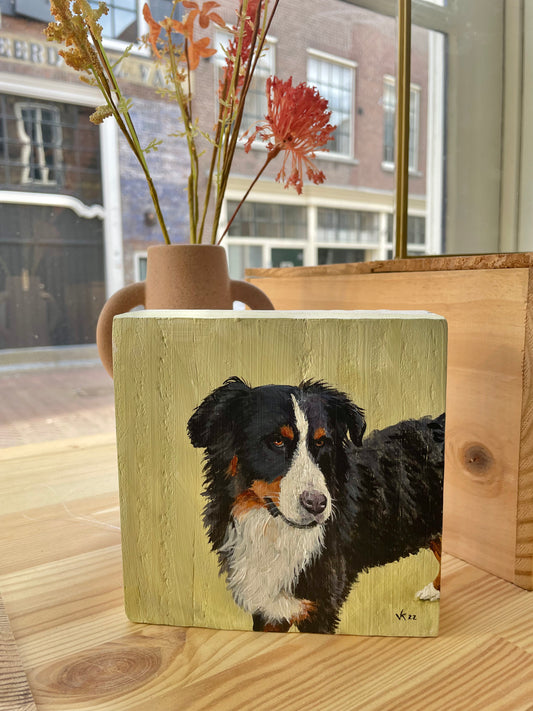 Schilderij Hond op houten blok