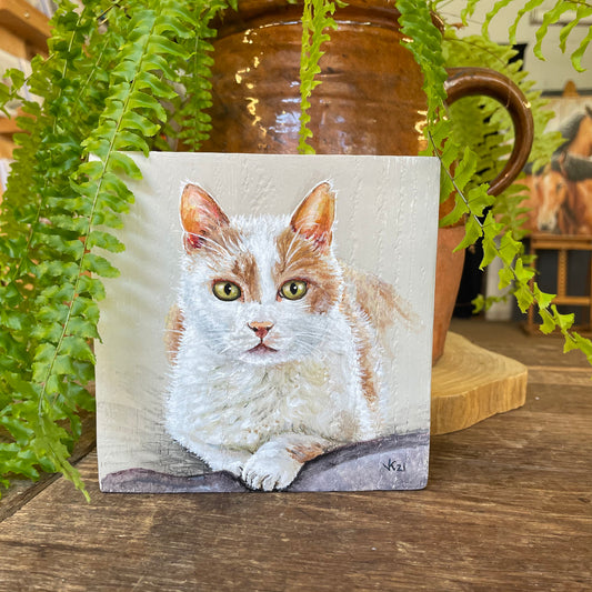 Schilderij Kat op houten blok